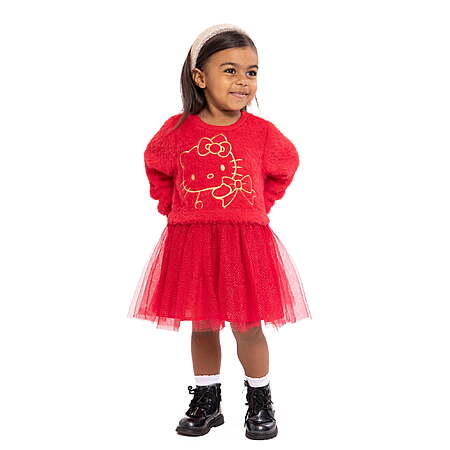 Hello Kitty Toddler Girls Eyelash Knit Tutu Dress with Long Sleeves, Sizes 12M-5T $9.75