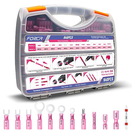 FORCA 940PCS Red Heat Shrink Wire Connectors Kit $18 + Free S/H