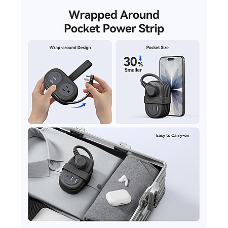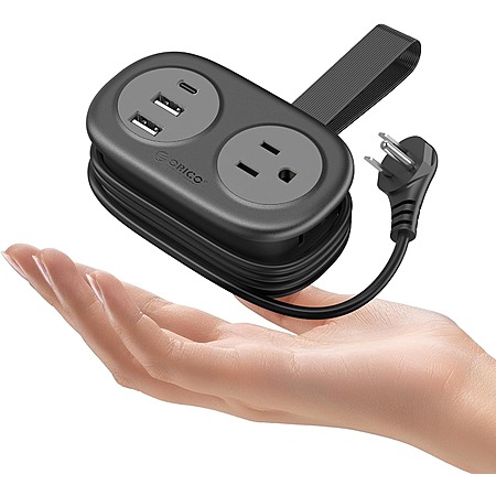 ORICO 5 -n-1 3.7' Pocket Extension Cord w/ 2 AC Outlets 2 USB-A & 1 USB-C Ports $12 + Free Shipping