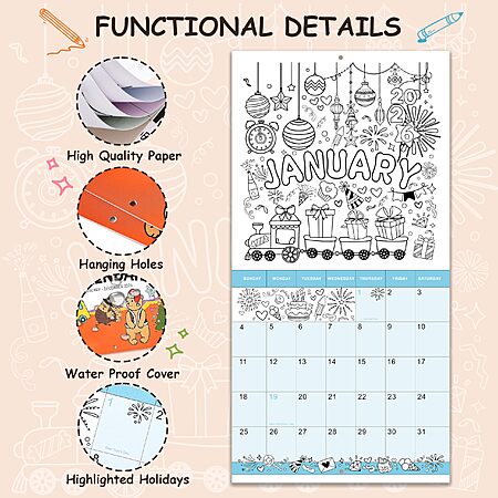 12" x 26" 2026 Kids' Coloring Wall Calendar $3.29 + Free Shipping w/ Prime or on $35+