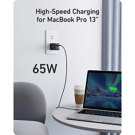 Anker 735 Charger (Nano II 65W) :- 65W total output with GaN II technology for fast charging laptops, tablets, and phones.