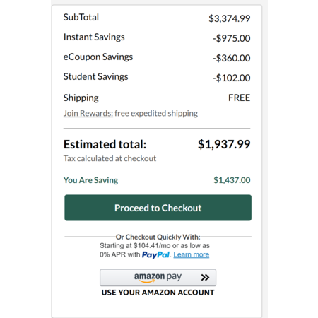 Students and others who verify with Student ID.me will receive a further $102+ discount lowering the price to $1937.99 (or less)