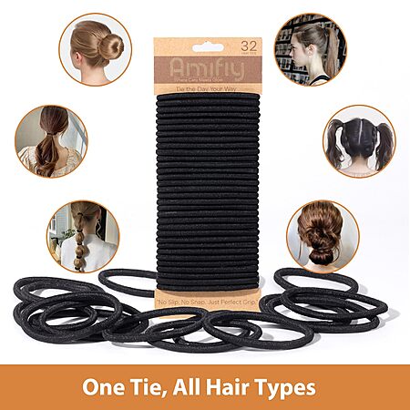 32-Count 4mm Amifiy No Damage Hair Ties (Black or Multicolor) on sale for
