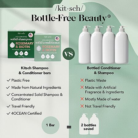 Kitsch Rosemary & Biotin Shampoo and Conditioner Set for Hair Growth - Strengthening, Thickening & Volumizing Shampoo and Conditioner Bar - Paraben, Sulfate & Silicone Free - Made in USA - 2 pack for $22.37