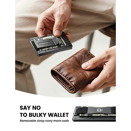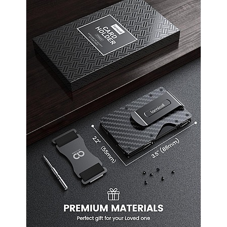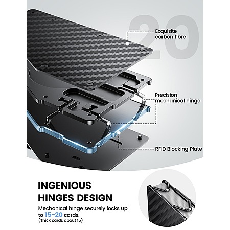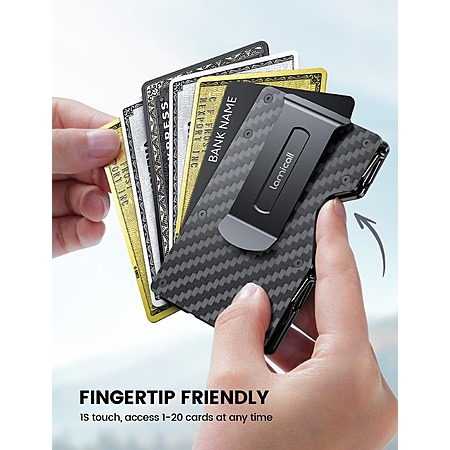 Lamicall Minimalist Slim Metal Carbon Fiber RFID Blocking Wallet w/ Mechanical Hinge, Holds 15-20 Cards $12 & More + Free Shipping w/ Prime