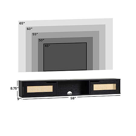 Walker Edison Modern Floating Rattan-Door TV Stand for TVs up to 65”, Coastal Oak - $24.99