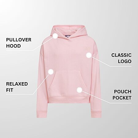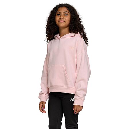 New Balance Girls Hoodie – Cute Comfy Soft Fleece Cotton Blend Pullover Sweatshirt, Drop Shoulder, Sizes 4-16 Rose
