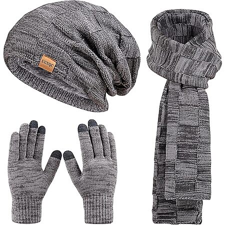 Yevrimow via Amazon has Beanie Hat Scarf Touchscreen Gloves Set (Various Colors) for $9.79 - $3.92 off when you visit the promo code page to activate = $5.87. Shipping is free with Prime or on $35+ orders.