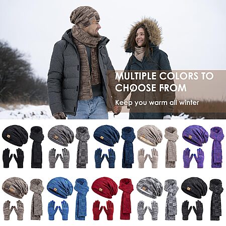 Beanie Hat Scarf Touchscreen Gloves Set (various colors) - $5.87