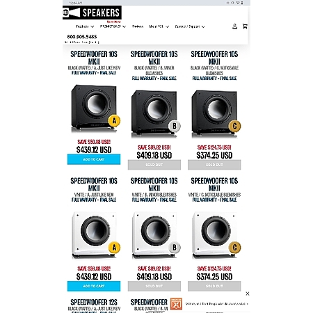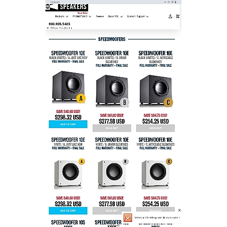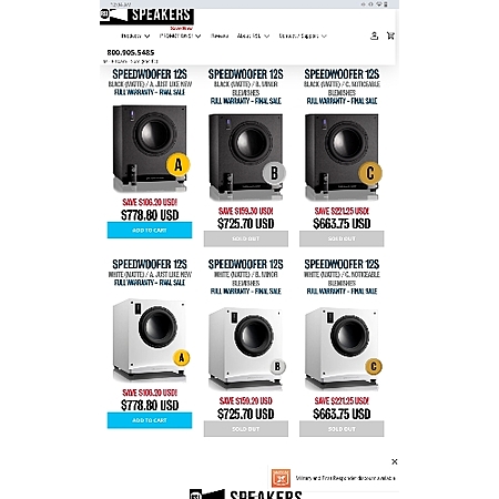 RSL Speedwoofer subwoofer factory open box sale. 10E $298 / 10S $439 / 12S $778 free shipping
