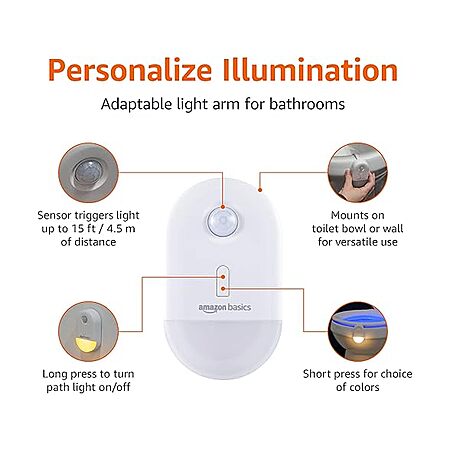 $4.79*:Amazon Basics Color Changing LED Toilet Bowl Motion Sensor Light, Battery Operated, 2 Pack, White
