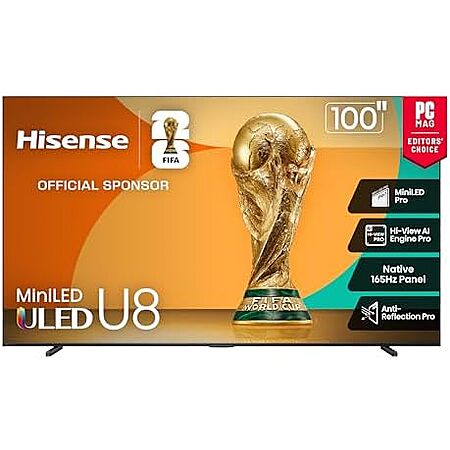 $2997.99* | 100″ Hisense U8 Series Mini-LED ULED Google Smart TV (100U8QG) at Amazon