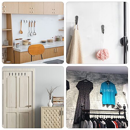 $5.75*:PRIGVOT 15 Pcs Black Wall Mounted Coat Hooks, Hanger Hook with 30 Pieces Screws for Towel, Key, Robe, Scarf, Bag, Cap, Coffee Cup, Mugs