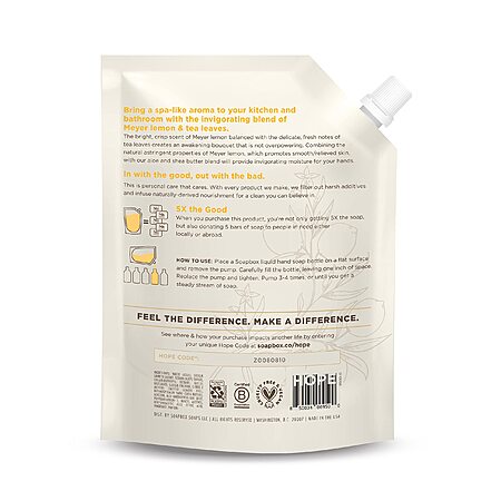 Soapbox Liquid Hand Soap Refill, Meyer Lemon & Tea Leaves 64oz Half Gallon Refill (Pack of 1) $21.99