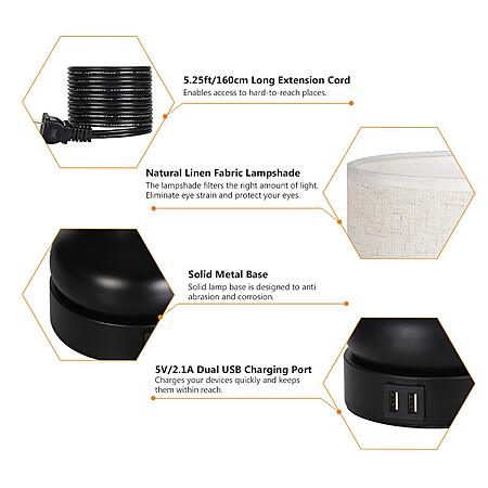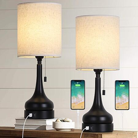 JS NOVA JUNS Table Lamps Set of 2 with Two USB Charging Ports - $24.99