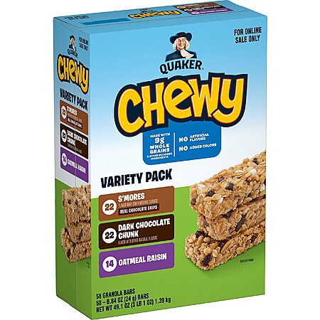 Quaker Chewy Granola Bars, 3 Flavor Back-to-School Variety Pack, 58 Count~$9.83 @ Amazon Resale