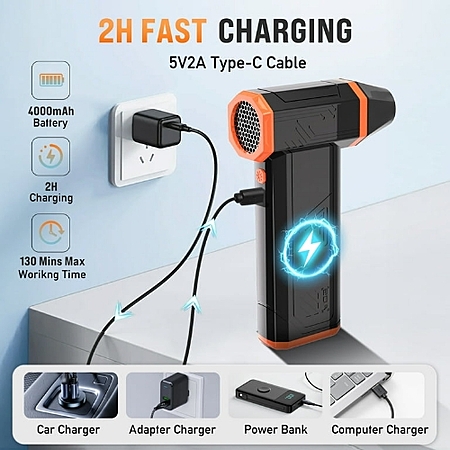 Eco-Friendly Rechargeable: Includes dual 2000mAh batteries, providing up to 130 minutes of runtime on low speed, and is USB-C rechargeable, offering a reusable alternative to air cans.