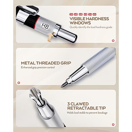 Ergonomic, Comfortable Design :The full-metal body provides ideal weight balance for fatigue-free writing and drawing or sketching, It brings you more effective and high quality tasks. The lead advances easily at the touch of a click. There is a sharpener in the cap of 2.0 mm mechanical pencil.