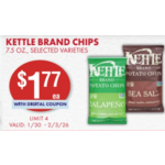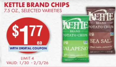 Smart and Final Stores (CA, NV) Kettle Chips 7.5 oz $1.77, Barilla Pasta 16 oz $0.99