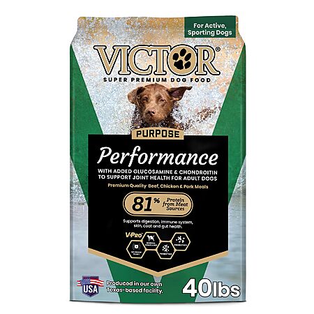 VICTOR Super Premium Dog Food – 40 lbs Dry Dog Food from Beef, Chicken and Pork Meal – 26% Protein for Active Adult Dogs – $41.74 or less S&S Clip Q