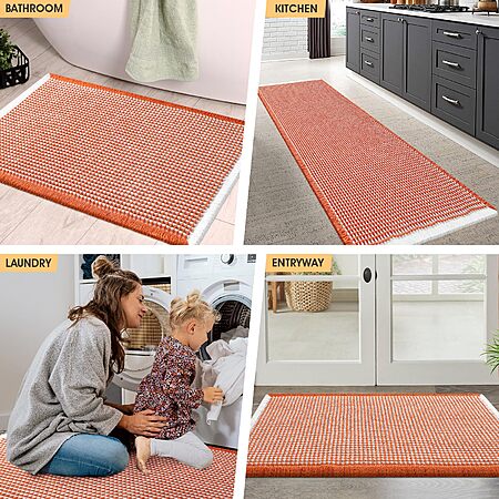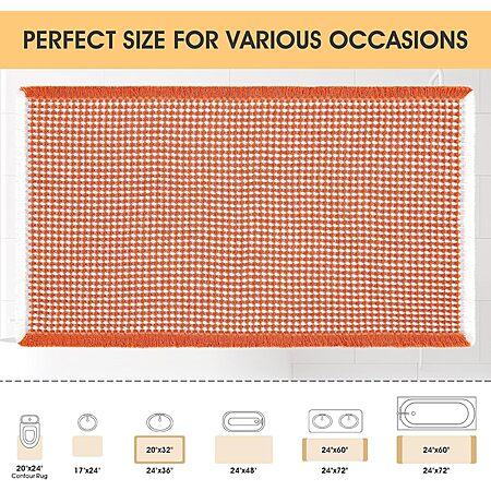 IM HOME MAT via Amazon.com has IM HOME Waffle Bath Mat Orange & Cream 36"x24", Boho Woven Modern Bath Mat Rugs, Absorbent Non Slip Bathroom Rugs, Soft Washable Bath Rugs with Tassels for Bathroom, Bedroom, Kitchen, Shower, Tub on sale for $9.99. Shipping is free with Prime or on $35+ orders.