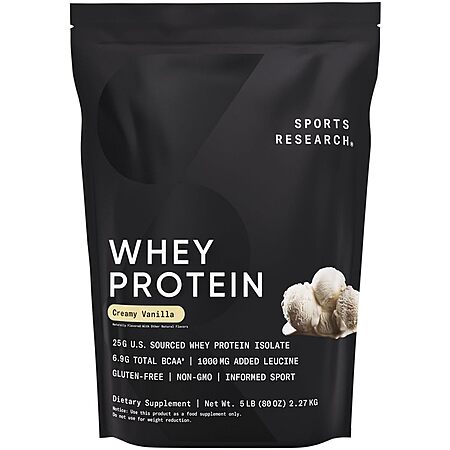 5-lbs Sports Research Whey Protein Isolate Powder (Creamy Vanilla, 63-Servings) on sale for $62.97 - 15% off when you checkout via Subscribe & Save =