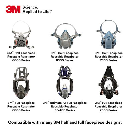 1-Pair - 3M P100 Respirator Cartridge/Filter 60923, Organic Vapors, Acid Gases, and Particulates $10.98
