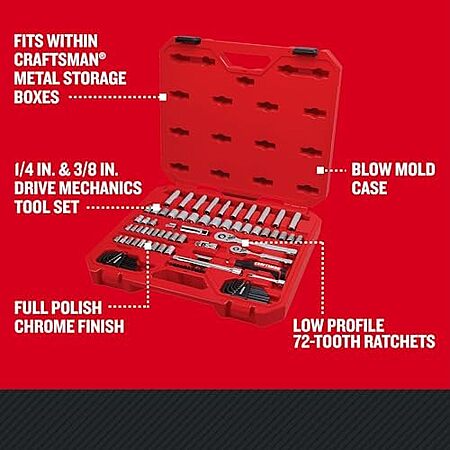 $59.98 | 83-Piece CRAFTSMAN Mechanics Tool Set, Hand Tool and Socket Set SAE/Metric (CMMT12121) at Amazon