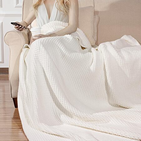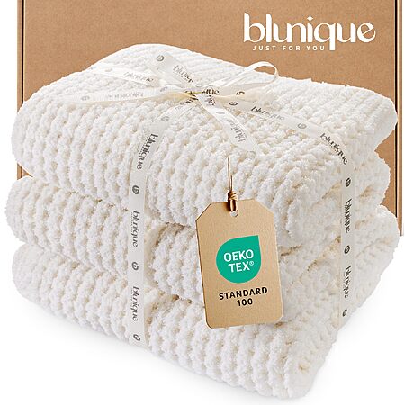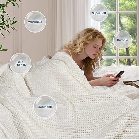 blunique Waffle Knit Throw Blanket, Luxury Cozy Chunky Knit Throw Blanket - Off White - $11.39