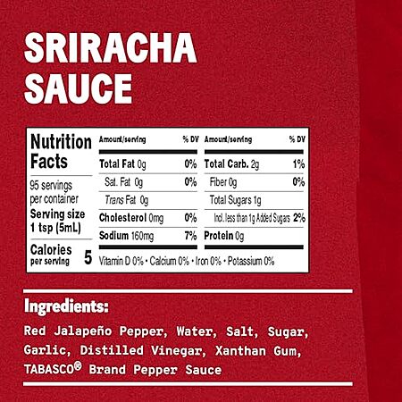 Amazon [amazon.com] has 20-Oz TABASCO Brand Sriracha Sauce for $3.99 - 10% when you 'clip' the coupon on product page - 5% when you check out via Subscribe & Save = $3.39.