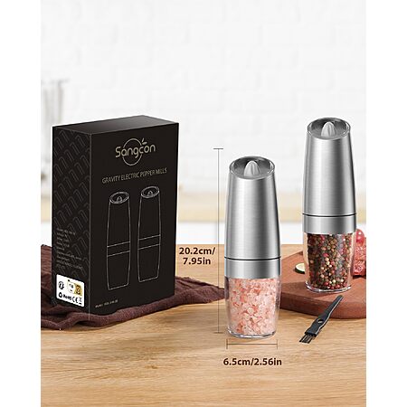 $9.98*:Sangcon Gravity Electric Pepper & Salt Grinder Set - LED Light, One-Hand Operation, Adjustable Coarseness, Battery Powered, X/XL Capacity