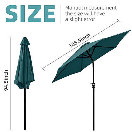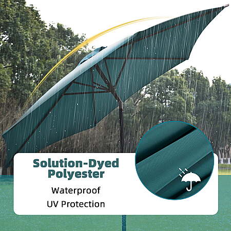 • Large 9FT Sunshade Area-Designed with a wide 9-foot canopy, this umbrella offers generous coverage for outdoor seating areas, comfortably shading 4–6 people on patios, gardens, decks, or poolside lounges.