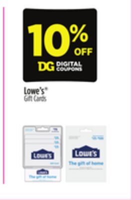 Dollar General offers a digital coupon for 10% off ONE Lowe's gift card, valid in store only, FEB 1 - 7.