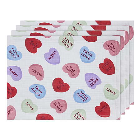 Conversation Hearts 4 Pack Table Placemat Set - 14" x 19" Each - 100% Cotton, Multi-color $9