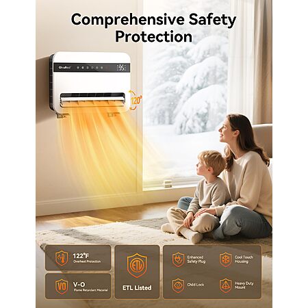 Givebest Wall Heater, 1500W Wall-Mounted Space Heater, 120° Vertical Oscillation, Adj Thermostat, Remote Control, 24H Timer $99.99