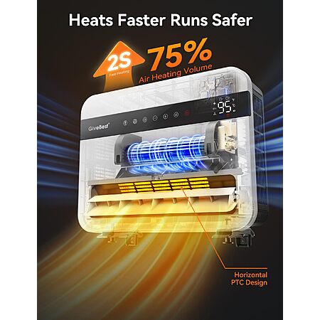 Givebest-Wall-Heater-for-Indoor-Use, 1500W Electric-Space-Heater, 120°Vertical Oscillation,Compatible with Alexa, Adjustable Thermostat, Remote Control, 24H Timer, Easy-mounted Heater for Indoor Use. Free Shipping w/Prime or $35+.