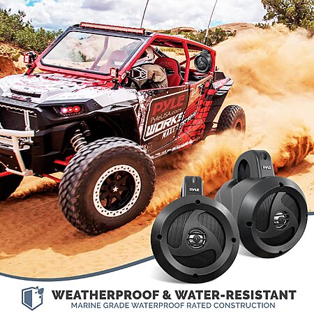 Amazon.com has Pyle 2-Way Passive Waterproof Off-Road Speaker System - 4 Inch 900w Peak, Marine Grade Wakeboard Tower Speakers, Full-Range Outdoor Audio Speaker for ATV, UTV, Quad, Jeep, Boat - 1 pair - Black on sale for $38.24. Shipping is Free.