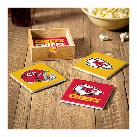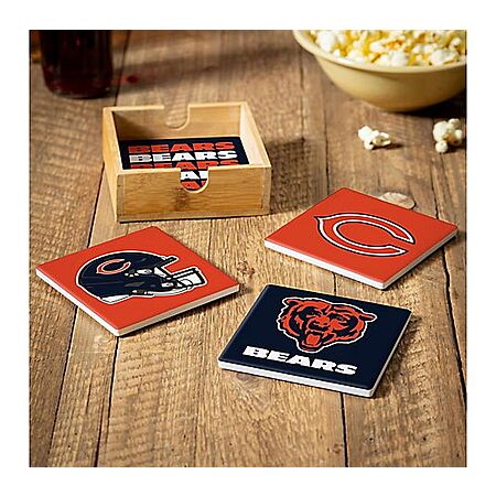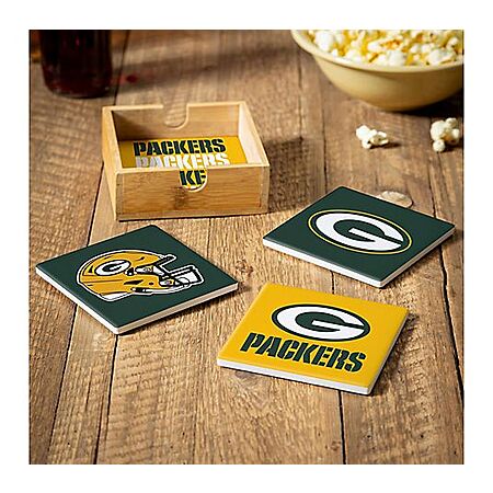 Evergreen 4-Piece NFL Team Ceramic Coaster Set w/ Wood Caddy (Various Teams) $13.97 + Free Shipping