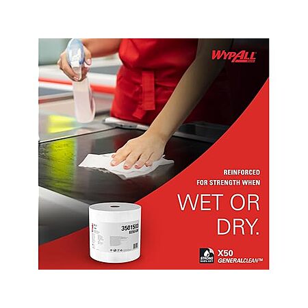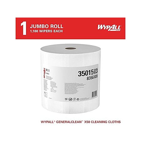 - 1,100 Sheets/Roll; 1 Roll of WypAll GeneralClean X50 Cleaning Cloths/Case; 1,100 Sheets/Case; White; Jumbo Roll; Strong for Extended Use