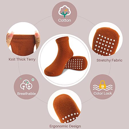 12-Pack JAKIDAR Baby Non-Slip Grip Cotton Toddler Crew Socks (Rose Red, 6-12M to 4-7Y) from $7.99 + Free Shipping w/ Prime or on $35+