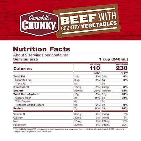 [S&S, AC] $19.94 | 16 × 18.8-Oz Campbell's Chunky Soup (Beef with Country Vegetables) ($1.25 each) at Amazon