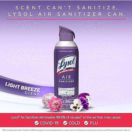 [S&S, AC] $12.07 | 3-Pack 10-Oz Lysol Air Sanitizer Spray (Light Breeze) at Amazon