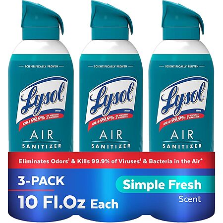 Select Accts: 3-Pack 10oz Lysol Air Sanitizer Spray (Various Scents)