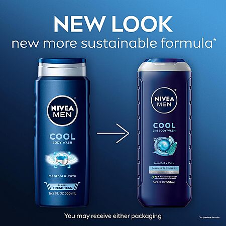 3-Pack 16.9-Oz NIVEA MEN Cool 3-in-1 Body Wash (Icy Menthol & Yuzu Scent) $8.25 or less w/ S&S @ Amazon