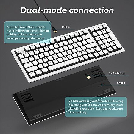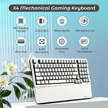 99-Key Hexgears X4 Wireless Mechanical Keyboard w/ Wrist Rest, Pudding Keycaps & Clicky Switch (White) $19.99 + Free Shipping w/ Prime or on $35+