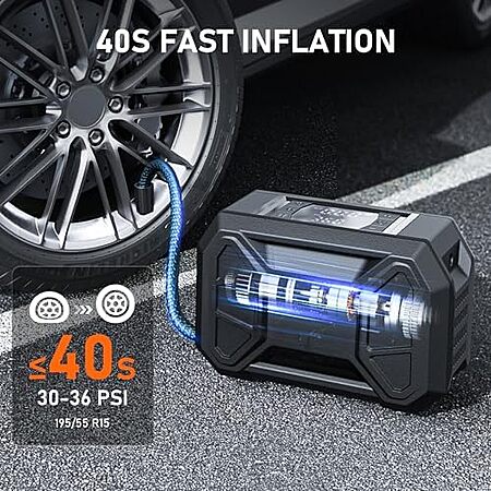 Model: Pumptiva Tire Inflator Portable Air Compressor, 150 PSI Portable Tire Inflator for Car 3X Faster Air Pump For Car Tire 12V DC Dual Power Battery Tire Pump with LED Light Motorcycle, Bike, Ball (Large)