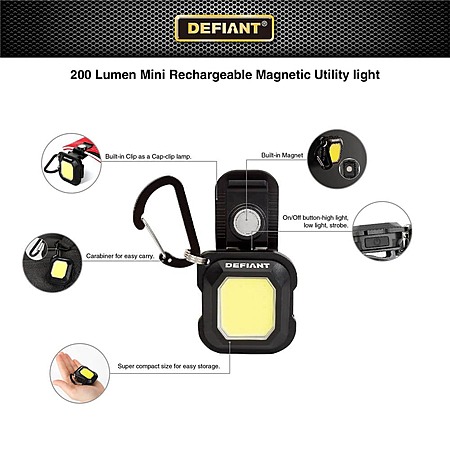 YMMV Defiant 2-Pack 200lm Mini Rechargeable Multi-Use Utility Light with Key Ring $3.5