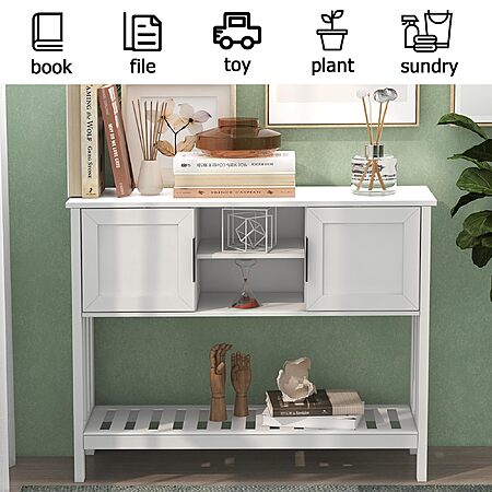 TaoHFE White Console Table w/ 2 Storage Doors (White,11.8"D x 39.4"W x 31"H) $54.99 + Free Shipping