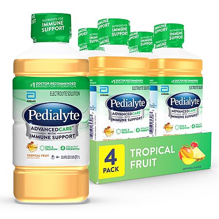 4-Pack 1L Pedialyte AdvancedCare Hydration Electrolyte Solution w/ PreActivPrebiotics (Tropical Fruit) $11.52 ($2.88 each) + Free Shipping w/ Prime or on $35+
