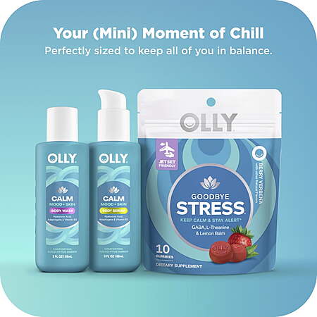 | Product Description: | We just want a little Peace, Please. Bring all of you back into balance with this expertly curated wellness kit that turns your daily shower into a soothing self-care ritual, thanks to CALM Mood + Skin body care and our bestselling Goodbye Stress gummies. Cleanse with CALM body wash, a creamy, non-stripping gel cleanser designed to soothe dry skin and ground your mood. Powered by clinically studied skincare ingredients, this dermatologist-tested formula is proven to repair your skin barrier with OLLY Vitamin Complex, infused with a blend of hyaluronic acid, adaptogens, and vitamin B3. Moisturize afterwards with CALM body serum, made with the same OLLY Vitamin Complex and scent, to add extra staying power to your hydration and fragrance. The grounding, spa-like scent of CALM is Comforting Eucalyptus Amber was developed with neuroscientists and proven to quiet your mood. For the full routine, take Goodbye Stress, made with GABA and L-Theanine, before or after you shower to enter “zen” mode. Skin-soothing, mood-morphing, and totally OLLY—this is your chill, bottled. Find (and Keep) Your Inner Chill: Peace, Please is an expertly curated wellness routine to bring all of you back into balance. CALM Mood + Skin: CALM body wash and serum are scientifically formulated to repair your skin barrier and transform your mood. Goodbye Stress: Our bestselling Goodbye Stress gummies are made with GABA and L-Theanine to help you keep calm and stay alert The Full Routine: Cleanse with CALM body wash and enjoy a light fragrance that lasts post-shower. Moisturize with CALM body serum for extra staying power and hydration. For the full routine, take Goodbye Stress pre-or-post shower and enter “zen” mode. Clinically Studied, Vitamin-Infused Skincare: Proprietary OLLY Vitamin Complex, made by skincare experts with hyaluronic acid, adaptogens, and vitamin B3, repairs and soothes dry skin. Scientifically Proven Scents: Calming fragrance developed with neuroscientists and proven to ground your mood. These statements have not been evaluated by the Food and Drug Administration. This product is not intended to diagnose, treat, cure or prevent any disease. |